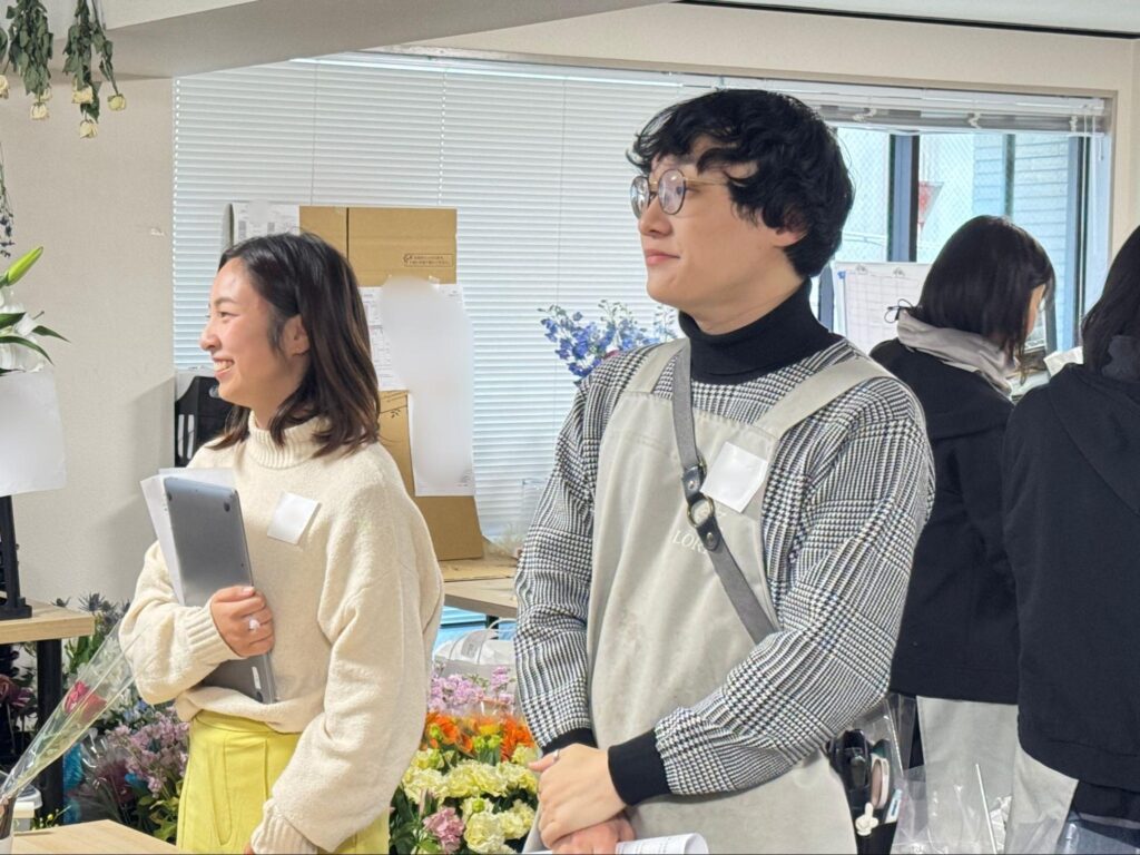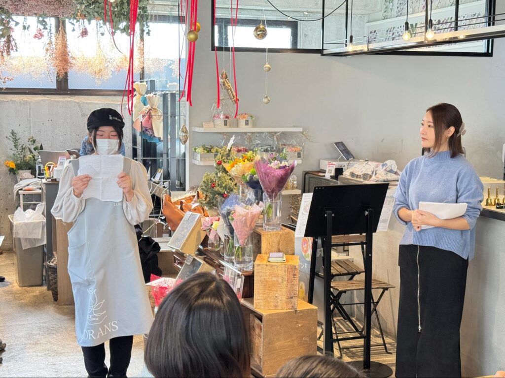 カフェ及びフラワー担当のスタッフから、日々の仕事のやりがいについてお話しました。