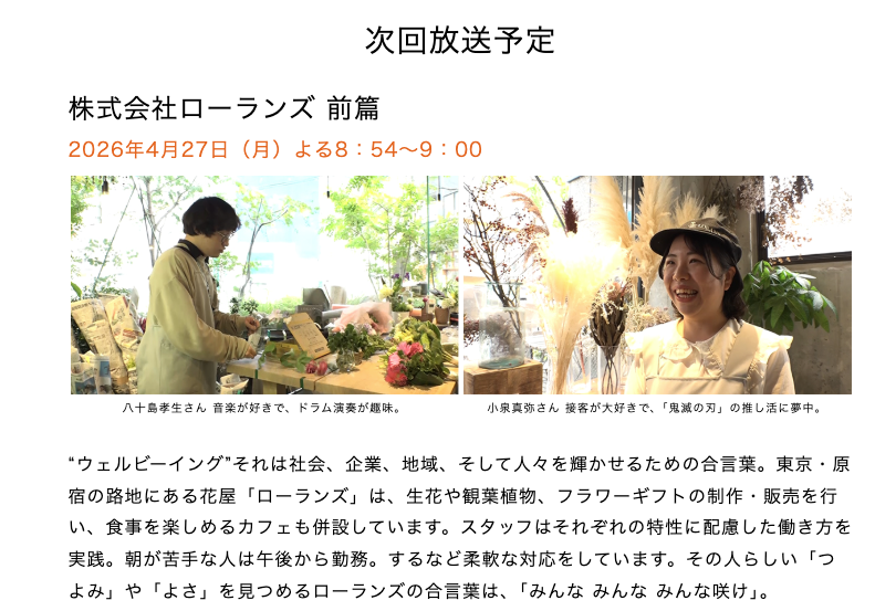 BS朝日「ウェルビーイング、みつけた」でローランズをご紹介いただきます。