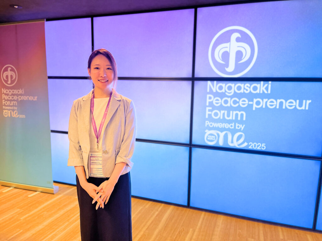 ローランズが掲げている「人を咲せる」「みんなみんなみんな咲け」のステートメントにちなみ、「Letting People Bloom」というテーマで登壇しました。会場にはサッカー日本代表の森保一監督や、国連事務次長補のMaher Nasser氏、昨年ノーベル平和賞を受賞した被団協・田中重光さん、そして2017年ノーベル平和賞を受賞したICAN共同代表のCarlos Umañaさんなど多彩なゲストをはじめ、Peace-preneurというテーマに相応しい若者たちが参加されました。