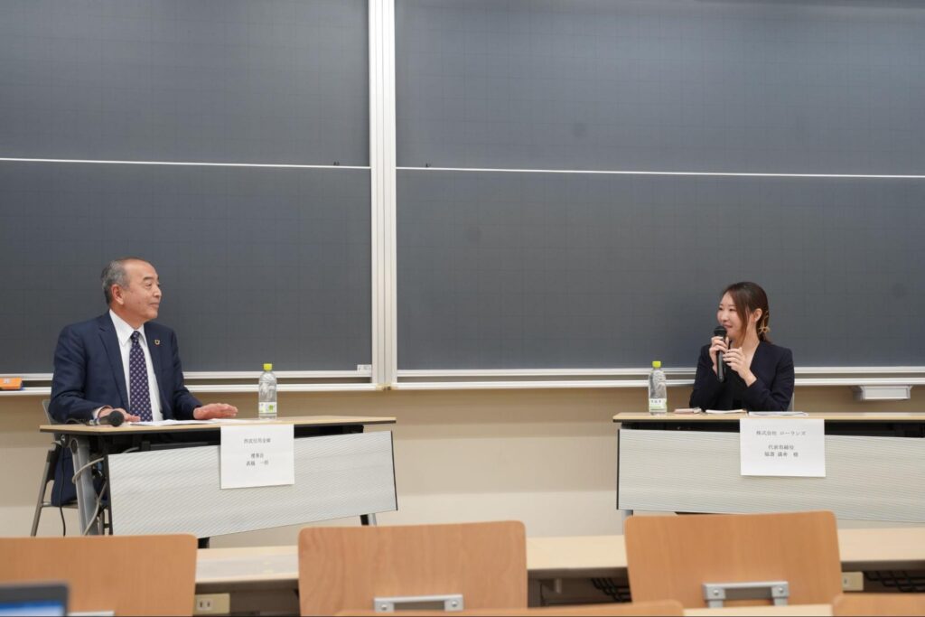 ローランズ代表の福寿が、日本大学商学部(西武信用金庫寄付講座)にて講演しました。